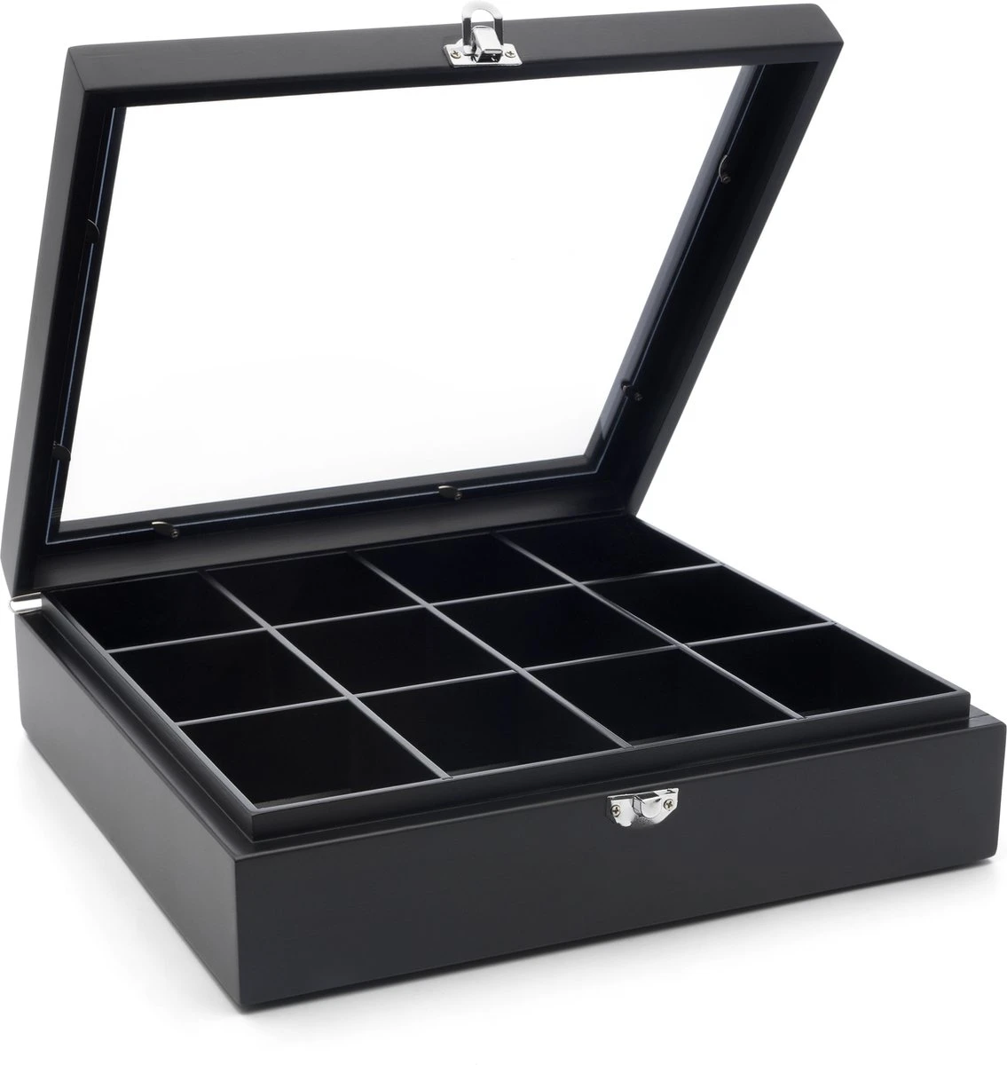 Deze fraaie 12-vaks theedoos uit de Universal collectie van Bredemeijer is voorzien een venster zodat je vanaf de buitenkant snel en gemakkelijk al kunt zien welke smaken er voorhanden zijn. De theedoos is gemaakt van zwart bamboe wat het geheel een chic uiterlijk. De serie universal van Bredemeijer bestaat uit diverse artikelen die het drinken van een kopje thee bijzonder maken. Tevens staan bij alle artikelen van Bredemeijer gebruiksvriendelijkheid, kwaliteit en design voorop.