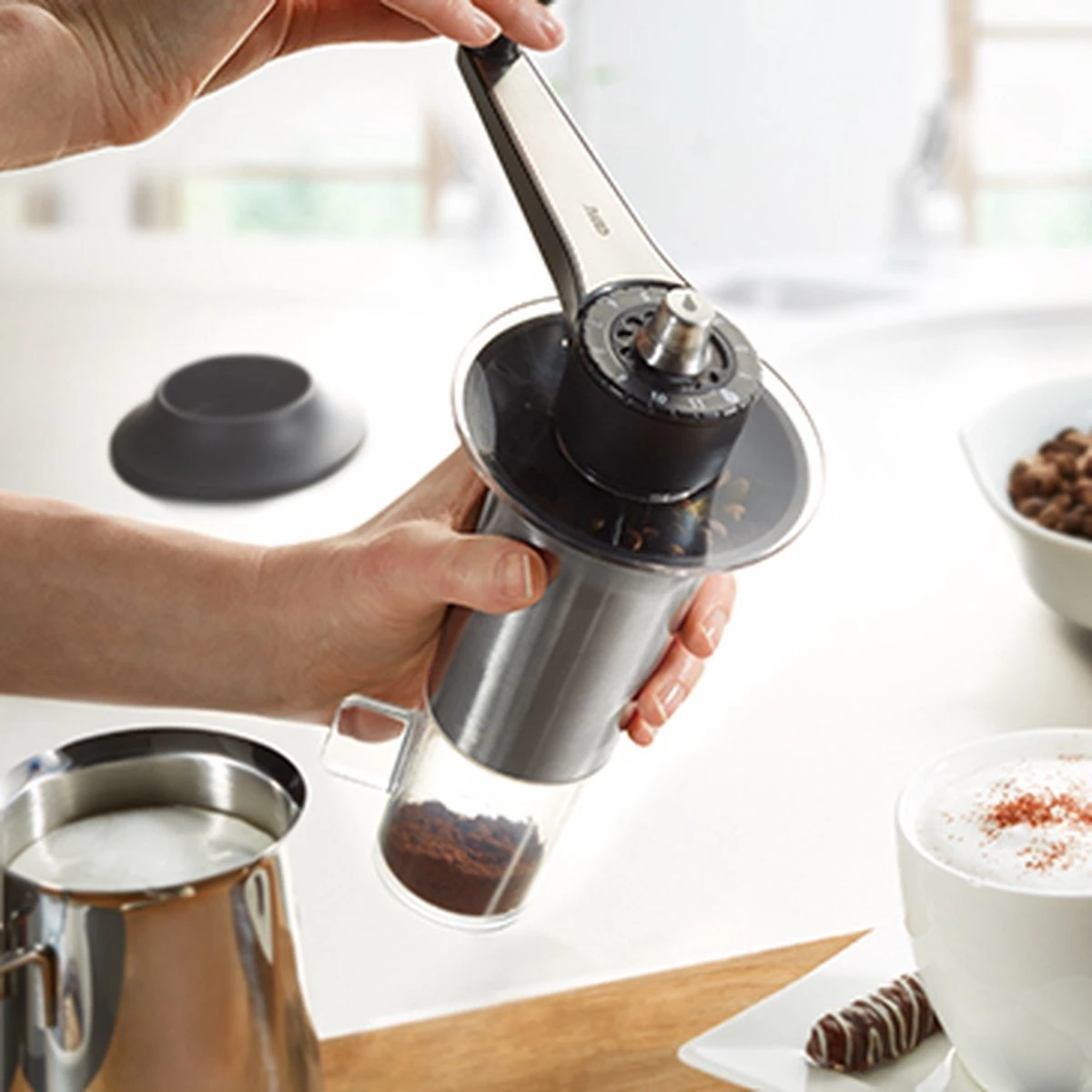 Deze kleine koffiemolen is perfect voor het malen van koffiebonen tot maximaal 4 kopjes. Ideaal voor espresso, filterkoffie of Frech press koffie. Het keramische maalwerk is onder te verdelen in 11 verschillende graden voor het perfecte kopje koffie. Ook het koffie reservoir heeft een handige onderverdeling. Het handvat kan er af gehaald worden en aan de molen bevestigd worden om ruimte te besparen. Verder word de koffiemolen geleverd met handige voet om hem makkelijk neer te kunnen zetten. Na gebruik kan hij het beste met de hand worden afgewassen.