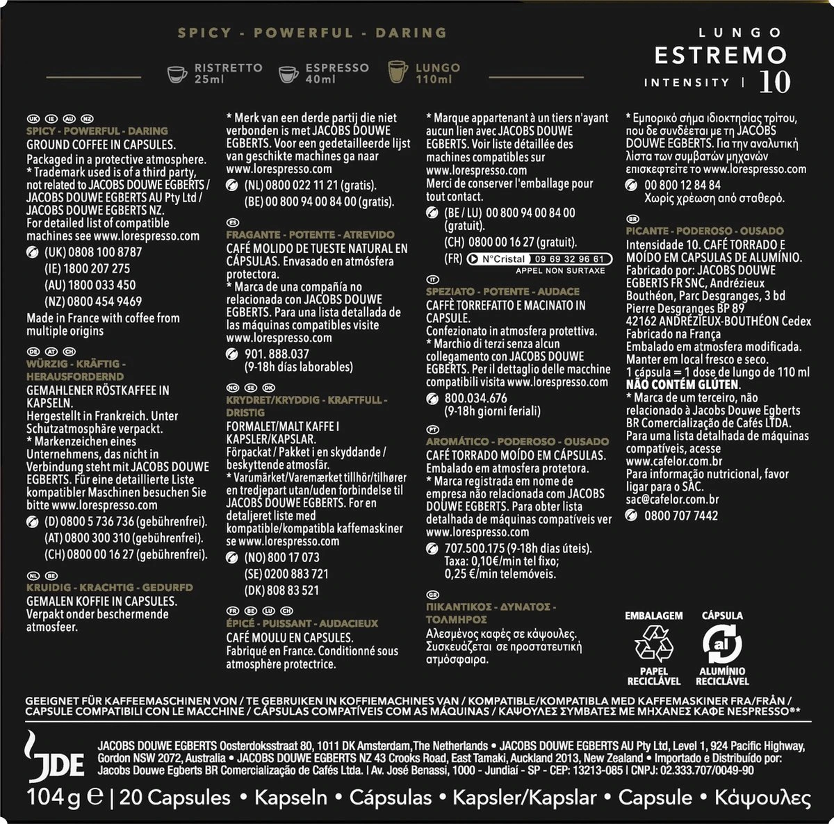 L’OR Lungo Estremo (10) – 10 X 20 Koffiecups